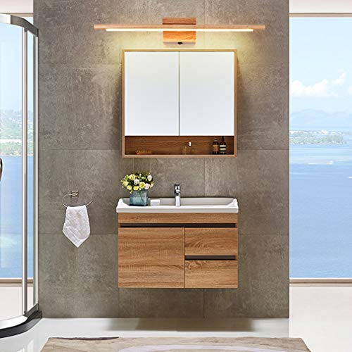 FFDCC Lampada da Specchio a LED in Legno con Interruttore, Luce da Specchio Bagno Vintage 60cm LED 10W Lampada per Specchio Trucco Camera da Letto Applique da Parete,Warm white