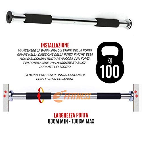FFitness FSMDK822 | 1 Barra | Attrezzo per Trazioni Muro Chin up Pull Up Body Crunch Bar Entroporta Torsioni Trazioni Sospensioni Addominali Pettorali Schiena Gambe