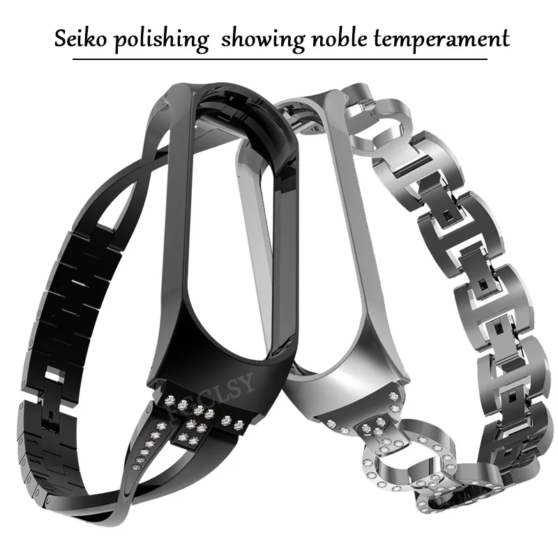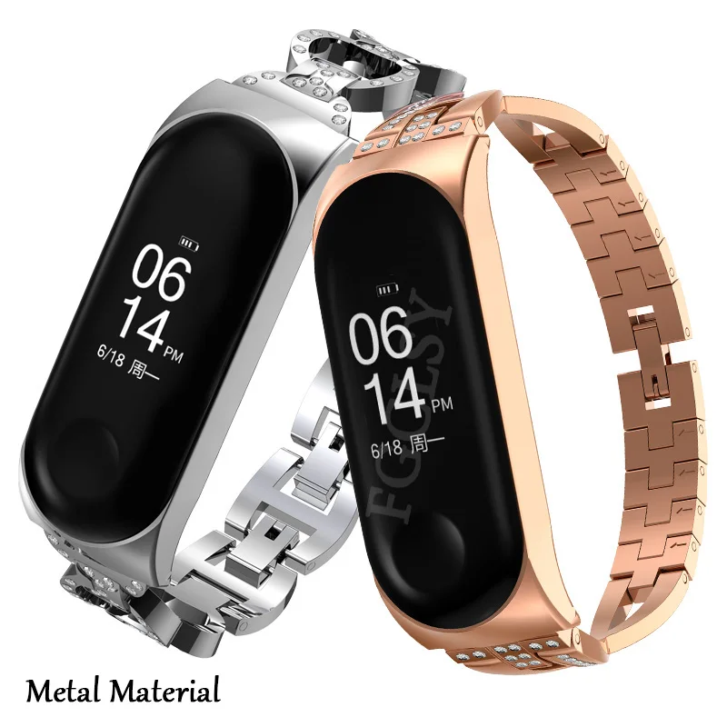 FGCLSY For Xiaomi Band 4 3 Wrist Strap For Mi Band 4 3 Smart Bracelet Replaceable Metal Wrist Strap Diamond Wristband Mi Band 4