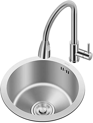 FGDFGDG Lavelli da Cucina Lavandino Rotondo del Bancone Bar Acciaio Inossidabile Lavello da Balcone Rubinetto Estraibile Silver 2021,30cm