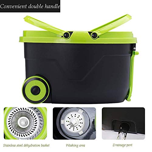 FGDSA Set mop e Secchio 360 Spin per la Pulizia del Pavimento, mop e Sistema di Secchio con Ruote e 2 tamponi di Ricambio Kit Secchio mop con Impugnatura Retrattile