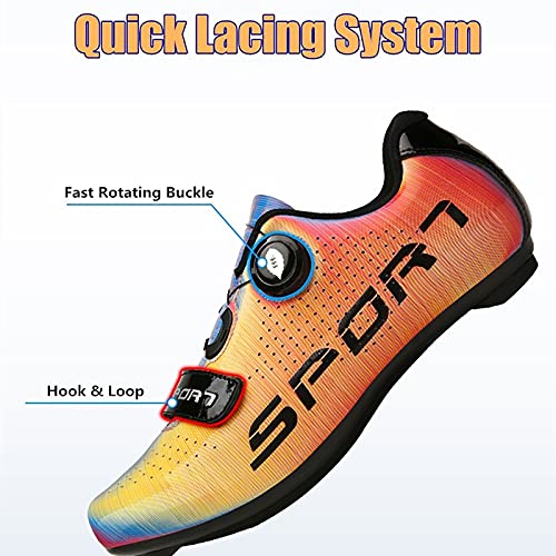 【Tomaia traspirante】 Queste scarpe per bici da corsa sono realizzate in pelle sintetica di alta qualità e tomaia in mesh, che ne garantisce la durata e rende le scarpe leggere. La parte in mesh, la soletta antiscivolo traspirante e le prese d'aria inferiori aiutano a mantenere il piede fresco e migliorano il comfort di guida.