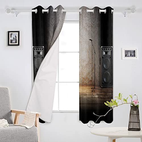 FGYSFT Ende Oscuranti Camera Da Letto - Chitarra Altoparlante Microfono Musica 80X160CM X 2 - 3D Stampa 90% Tende Oscuranti Occhielli Termiche Isolanti - Soggiorno Moderne Cameretta Bambini