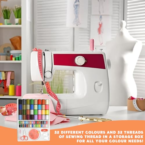 【Kit di Cucito】32 colori diversi di ago e filo per cucire e 32 bobine di sottofilo sono forniti in una scatola per soddisfare tutte le vostre esigenze di colore, in modo da poter vedere e trovare facilmente il colore del set di fili.