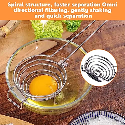 【Design Unico】Forniamo 2 separatore di tuorli con diverse forme e lunghezze di impugnatura. Uno dei separatori di tuorlo ha una forma a maglia e una struttura a spirale metallica, il che semplifica notevolmente la separazione del tuorlo dal bianco d'uovo.