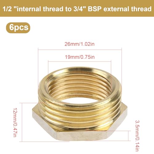Fhioevt 6 Pezzi Riduttore Tappo in Ottone 3/4" Maschio x 1/2" Filettatura Femmina Adattatore da 3/4 a 1/2 Ppollici (AG Ø 26 mm x IT Ø 19 mm) per la Conversione del Collegamento dei Tubi