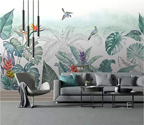 FHOMEY Carta da parati murale 3D Piante Tropicali Fiori Uccelli Carta Da Parati Tv Sfondo Murales 3D Sfondi Per Soggiorno-200 * 140 Cm