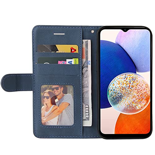 FHSYCR Cover per Samsung Galaxy A14 4G / 5G con 1 Pezzi Pellicola Vetro Temperato, Premium PU Pelle Portafoglio Libretto Flip Antiurto Protettiva Custodia per Samsung Galaxy A14 4G / 5G - Blu