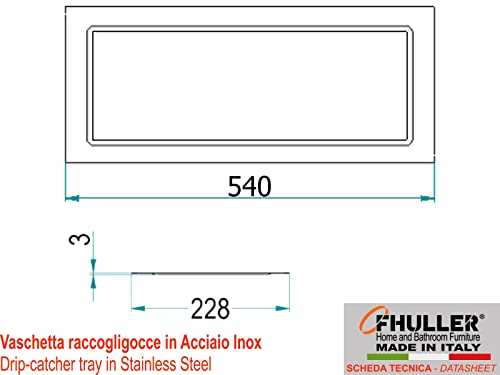 Fhuller Made in Italy Vaschetta Raccogligocce in Acciaio Inox 54 cm per Scolapiatti da Incasso per Mobile Pensile cm. 60