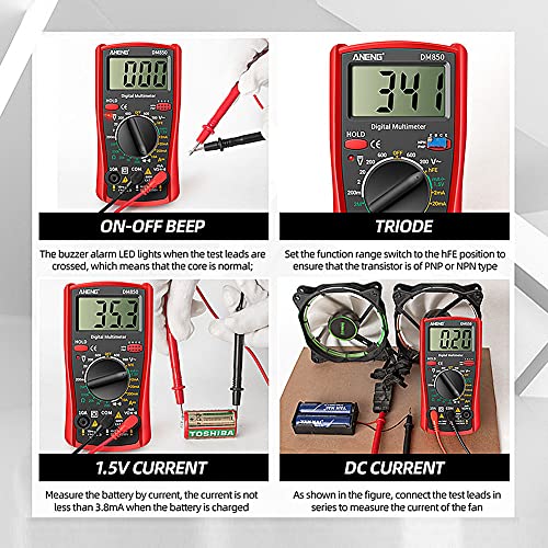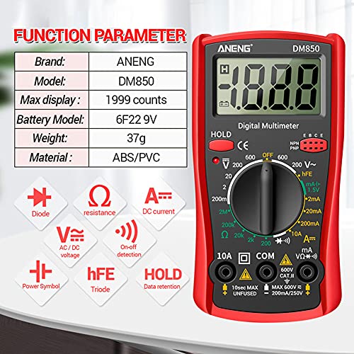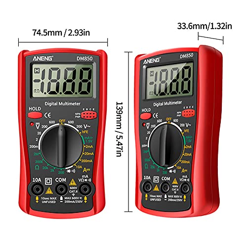 Fiacvrs AC DC Voltage 1999 Conta Rivelatore Diodo Tester Display LCD Multimetro Digitale (Rosso)