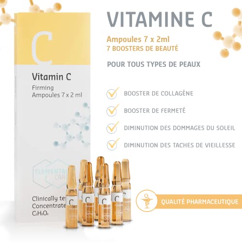 Fiale Siero Vitamina C 7x2ml - Ampolle per Viso - Aumenta la produzione di collagene del +57% - Contorno Occhi Antirughe - Effetto Illuminante - Antimacchia - Elemental Care