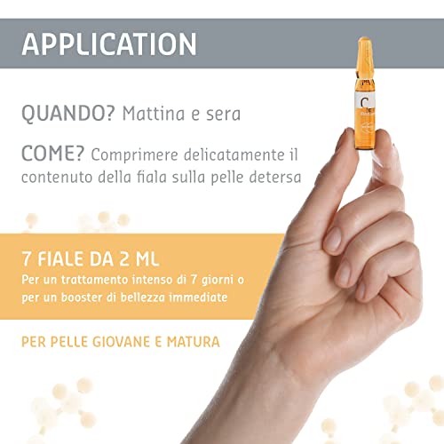 IL GLOW PER LA PELLE - Con le nostre ampolle alla vitamina C, dona alla tua pelle luminosità e idratazione, grazie ad una spinta di collagene extra. È ideale per eliminare le macchie di pigmentazione, aiuta a contrastare i brufoli e rinforza la pelle. Inoltre, idrata la pelle secca, aiuta a restringere i pori ed elimina le occhiaie