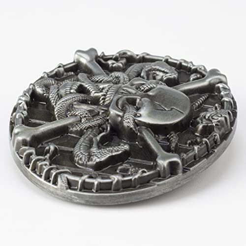 Fibbia per cintura con teschio per uomo, fibbia per cintura con teschio a croce, fibbia per cintura con scheletro con teschio di serpente, fibbia per cintura ovale con testa di teschio gotico