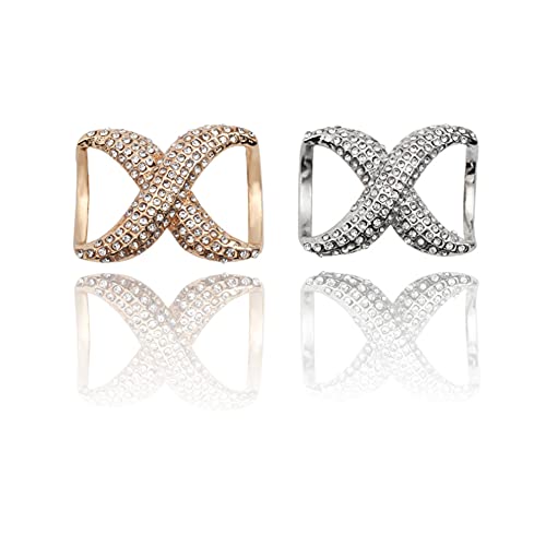 Fibbie per sciarpe, sciarpe, sciarpe, sciarpe, anelli, in seta, con strass, per fissare magliette, sciarpe, scialli, oro e argento