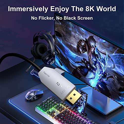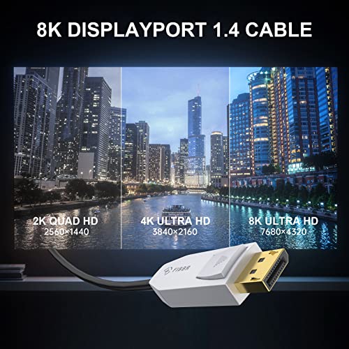 Ampia compatibilità: questo cavo DisplayPort 1.4 supporta velocità di trasmissione fino a 32,4 Gbps di larghezza di banda, risoluzioni fino a 8 K (7680 x 4320) a 60 Hz, 4K (3840 x 2160) @ 144 Hz, 2K@165Hz, 1080P @240Hz. Collegatevi a HDTV, monitor, display e schede grafiche per gaming grazie a DisplayPort per un audio cristallino e video in HD.