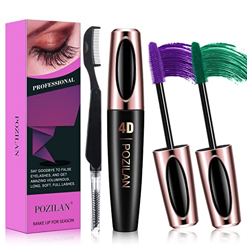 2 Pack 4D Silk Fiber Lash Mascara Purple & Green Waterproof with Folding Eyelash Comb Brush - Lengthening, Volumizing, Long-Lasting, Natural Eye Makeup