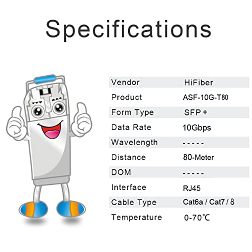 H!Fiber 10Gb SFP+ RJ45 Modulo 80 Metri, 10Gbase-T SFP+ Transceiver di Rame per Cisco, Meraki, MikroTik, Ubiquiti, Unifi, Netgear, QNAP, D-Link e Altro Ancora, Cat6a/Cat7/Cat8