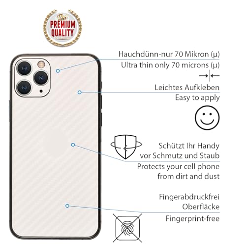 Set di 2 Fibra di carbonio Design Foglio Resistente ai graffi Adesivo posteriore per iPhone 11 Pro Antiscivolo, Antipolvere, Ultra Sottile Pellicola protettiva antigraffio per la schiena