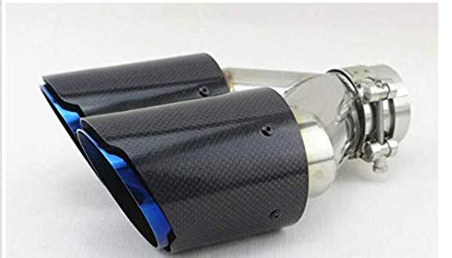 Tubo di coda in fibra di carbonio, doppio tubo rotondo bocca di scarico auto Liner universale gola per auto 63 mm estremità blu (come mostrato)