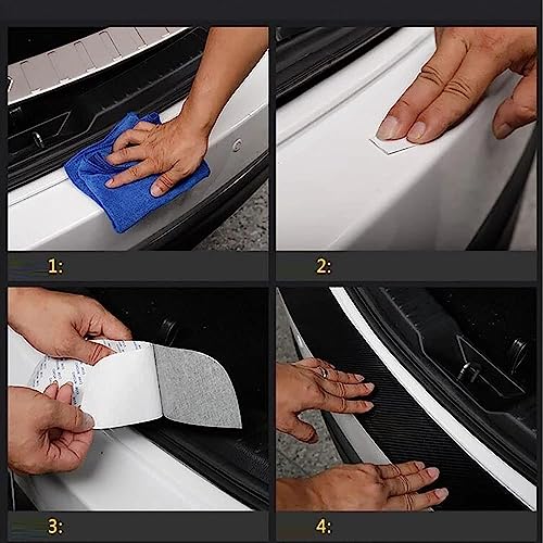 【Installazione】Facile da installare. Può essere facilmente installato senza attrezzi. Durante l'installazione, pulire la polvere sulla copertura del paraurti del bagagliaio, strappare la pellicola protettiva super colla e incollarla direttamente.