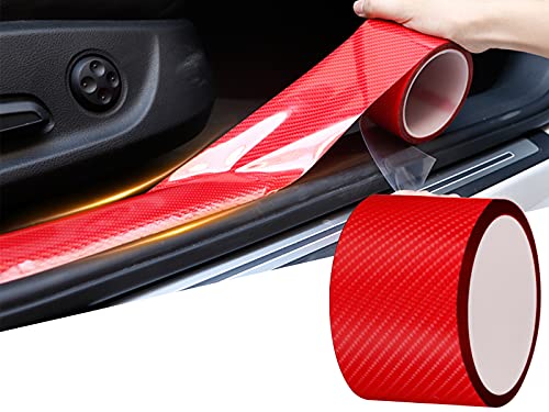 5D Fibra Di Carbonio Rivestimento Adesivo Car Sticker Auto, Protezioni Per Davanzali Per Porte Auto In Fibra Di Carbonio Universali Autoadesive Per Auto Protettive (Rosso fuoco, 7cmX10m)