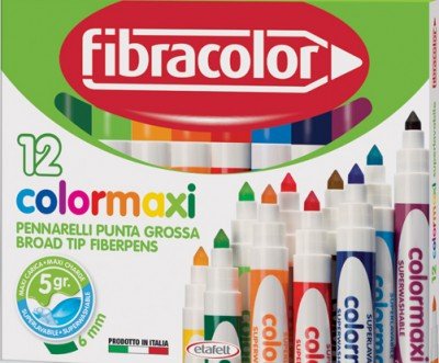 Fibracolor Pennarelli Colormaxi Punta Grossa Lunga Durata Lavabili 12 Colori