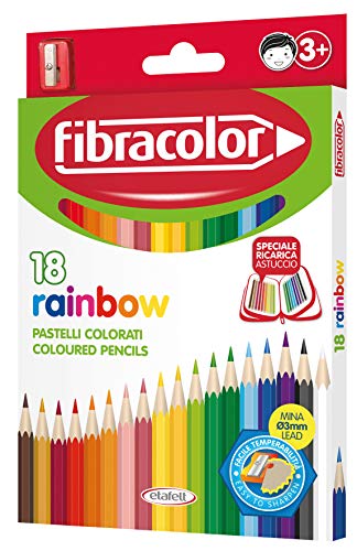 Fibracolor Rainbow astuccio 18 pastelli colorati in legno esagonali punta fine
