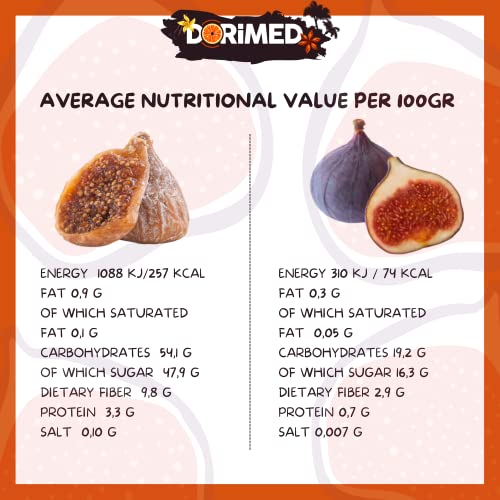 ✔️ SQUISITI: I prodotti Dorimed come il fico, vengono sempre selezionati uno ad uno con cura per ricercare sempre il massimo del gusto che risulta molto aromatico, in più questi fichi vengono delicatamente essiccati senza aggiunta di additivi, conservanti e OGM.