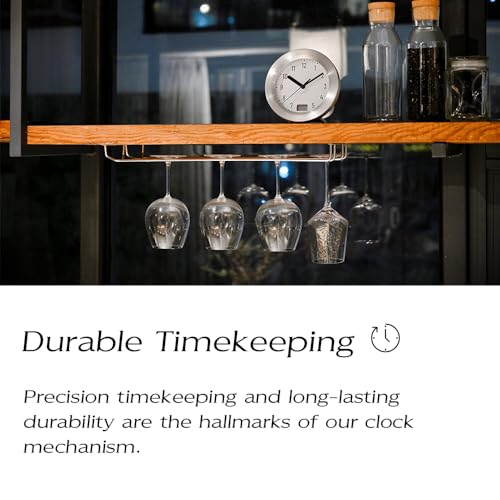 [Silenzioso e preciso]: Goditi il funzionamento silenzioso e la precisione dell'ora grazie al meccanismo di movimento a salto di secondo. Le sue dimensioni compatte di 17 cm sono perfette per qualsiasi bagno e il funzionamento a batteria consente una facile manutenzione.