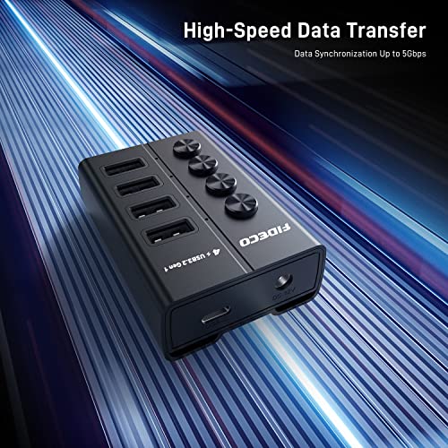 FIDECO 4 Porte USB 3.2 Gen 1 HUB, Alluminio Hub USB con Interruttore Indipendente, HUB Adattatore con Cavo USB C-C e Cavo USB C-A