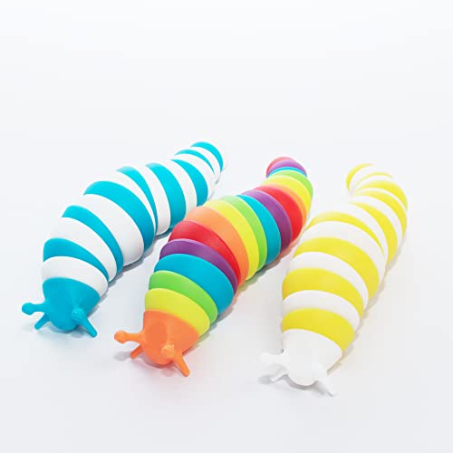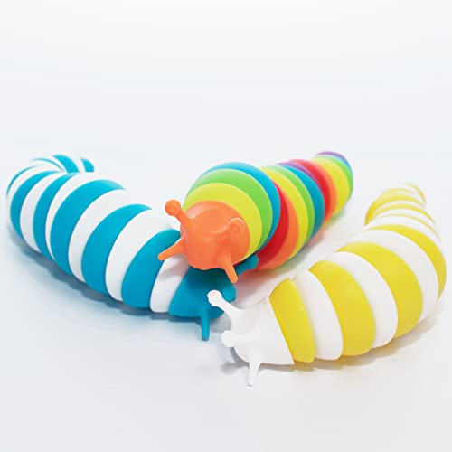Fidgets Slug Giocattolo Lumaca Arcobaleno 3D Fidget Slug Toy Anti Stress Giocattolo sensoriale creativo per piccole capacità motorie per bambini e adulti, giallo bianco
