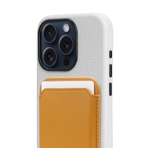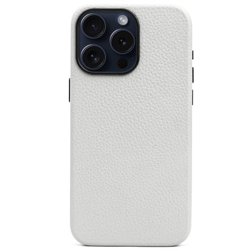 FIDWALL Custodia in Pelle per iPhone 15 Pro Max con Magsafe,Vera pelle(Ciottolo bianco)