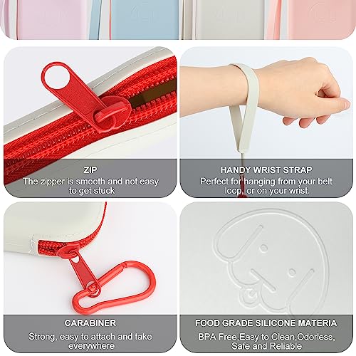 FIDWALL Custodia in silicone per cani,confezione da 2 borse da passeggio per cani e gatti,formato tascabile,facile da pulire,Design con cerniera e cinturino da polso.(Grigio chiaro&viola)
