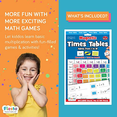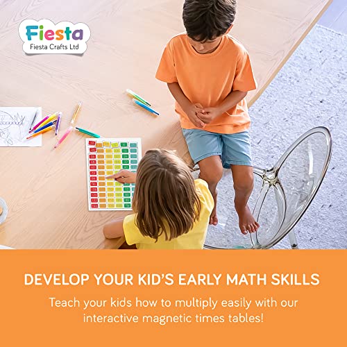 Fiesta Crafts Magnetic Times Tables for Kids - with 144 Reversible Magnetic Numbers, Board & Dry Wipe Pen - & Educational Toys for Kids' Early Maths Games & Skills - for 6+ Year Old Boys & Girls