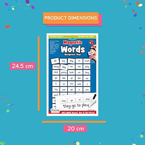 Fiesta Crafts Magnetic Words Reception Year - Learn to Read & Write Magnets for Kids with 50 Word Pieces, Magnetic Board & Dry Wipe Pen - Early Development & Activity Toys for 4+ Year Olds