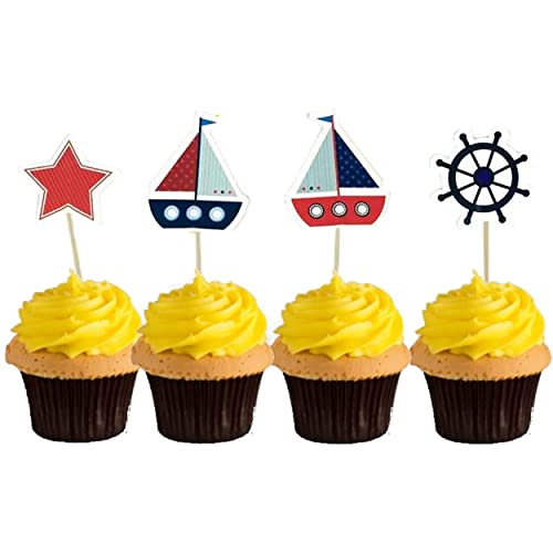 WIKI FIESTA Decorazione per torta MARE, Decorazione teme marino, Barca Cake Topper, velo Cupcake, Timon Deco Cupcake, Compleanno bordo del mare, Decorazione Compleanno Marittimo (set di 24)