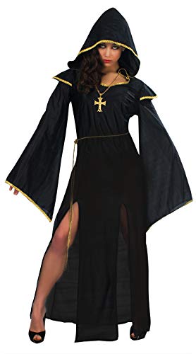 Questo costume da donna in satan gotico è un ottimo travestimento di alta qualità. L'articolo include felpa con cappuccio DRESS WITH HOOD, BELT ed è realizzato in 100% poliestere.