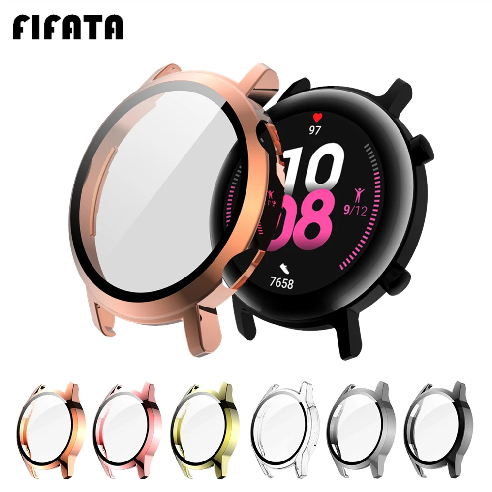 FIFATA 2in1 Plating Full Cover+Tempered Glass Screen Protector For Huawei Watch GT 2 46mm 42mm Case Shell GT2 Protective Sleeve