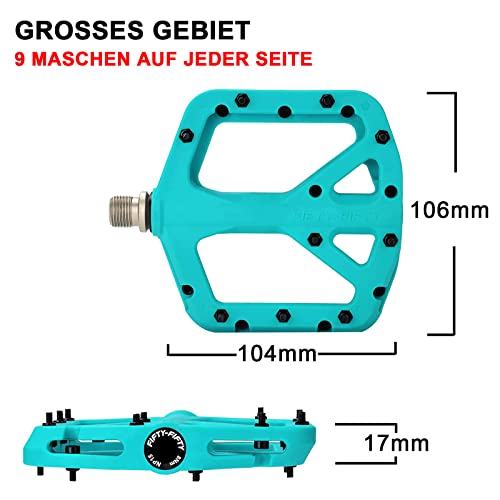 FIFTY-FIFTY Pedali per Bici, MTB in Nylon Cuscinetti 9/16" Universali Pedali Bicicletta Flat Antiscivolo Impermeabile, per MTB, BMX, Bici Pieghevole, Bici da Strada (turchese)