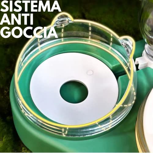 FIGARO CATS STORE -Ciotola Gatti Rialzata, 3 in 1: Doppia ciotola Gatto con Automatic Water Dispenser Ciotole inclinate per Gatti con acqua (verde)