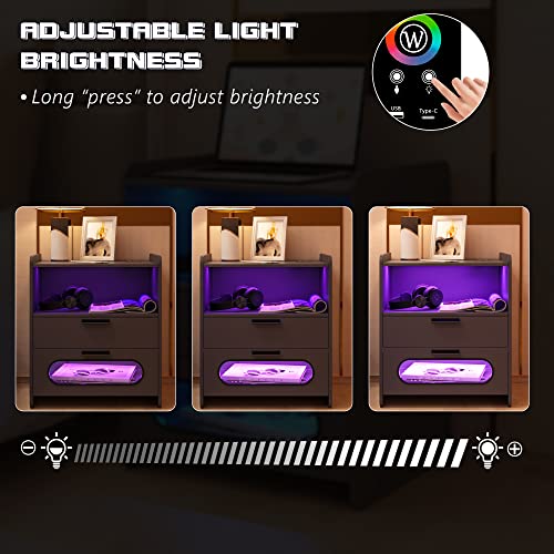 Figbird Comodino LED RGB con stazione di ricarica wireless e 1 porta USB e 1 porta TYPE-C, Comodini con 24 colori di luce regolabili, luminosità regolabile e sensore di movimento