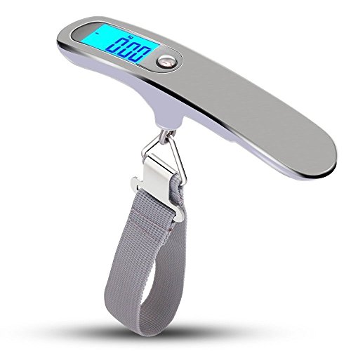 FIGEMN BAGGAGE digitale pesa valigie, bagaglio Bilancia portatile con display LCD, 50 kg capacità [Argento]