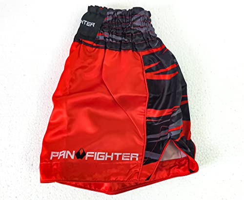 PAN FIGHTER | Pantaloncini Muay Thai Boxe | MMA Abbigliamento Training | Kick Boxing combact (Large, Rosso)