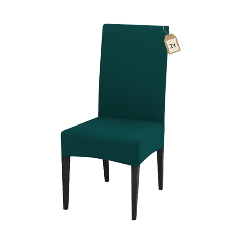 FIGOOO Coprisedie Elasticizzati con Schienale 2 Pezzi Coprisedia per Sala da Pranzo Spandex Fodera per Sedia da Cucina Universale Lavabile Decorazioni per la Casa Cucina(Verde,2pcs)