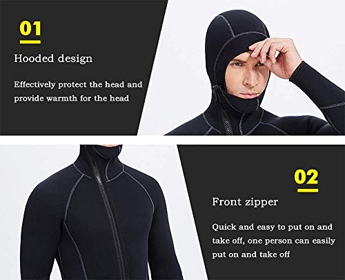 Uomo Figura intera Muta da sub - 5 mm per adulti in neoprene Surf Immersione Muta da sub - Uomo Nero Muta Figura intera con Front Zip E Cappello,XXXL