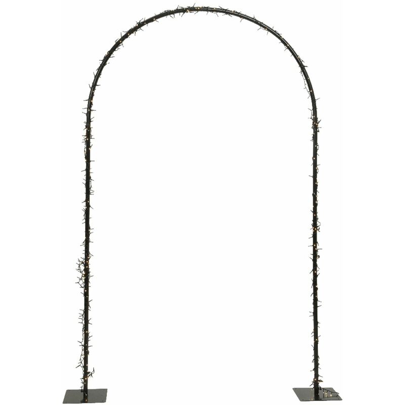 Questo arco è una figura a LED luminosa perfetta per decorare il giardino e gli ambienti esterni. La figura, alimentata con un trasformatore, si illumina di una luce color nero e bianco caldo . Scheda tecnica Colore: Nero/Bianco Caldo Classe IP: IP-44 Certificato: Kema Keur Colore LED: Bianco Caldo (Non sostituibili) Funzioni: Costante Per esterno Tipo Presa: EU Tipo potenza: Trasformatore Forma: Arco Marchio di Qualità: CE Lunghezza Cavo: 500 Dimensioni LED: Micro Dimensioni Lunghezza: 2,5 cm Larghezza: 130 cm Altezza: 230 cm LED: 500