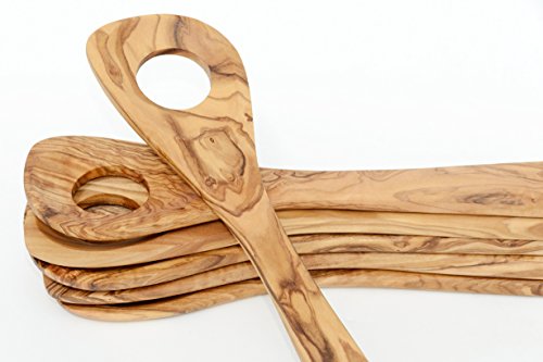 Figura Santa Cucchiaia da Risotto in Legno d'ulivo. Lunghezza 30 cm. Adatta Anche Come mestolo o Semplice Cucchiaio di Legno.