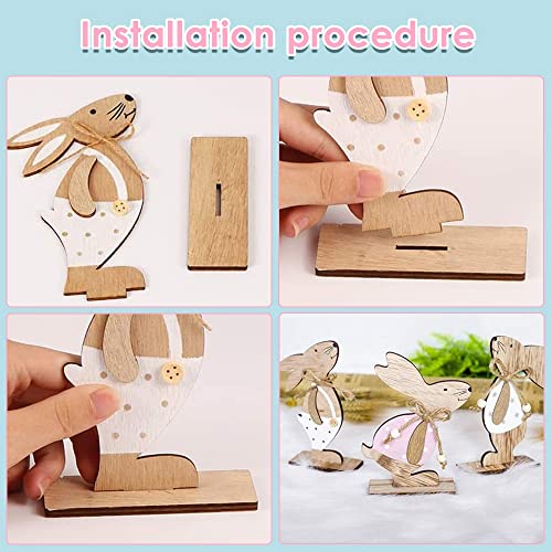 [Alta Qualità]: Conigli Pasquali è fatto di legno e non si danneggia facilmente. Possiamo vedere chiaramente le venature del legno. I conigli pasquali sono carini, divertenti e creativi, anche le dimensioni e la lavorazione si adattano. La base rettangolare permette ai conigli di stare fermi senza cadere.