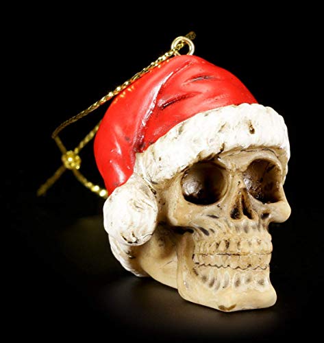 Figuren Shop GmbH Gotico Palla di Natale - 6 Set Teschi con Berretto di Natale Decorazioni da Appendere, Dipinto a Mano