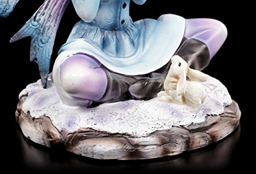 Figuren Shop GmbH Inverno Statuetta Elfo con Coniglio di Neve - Fairy Fata Decorazione Fantasy Neve